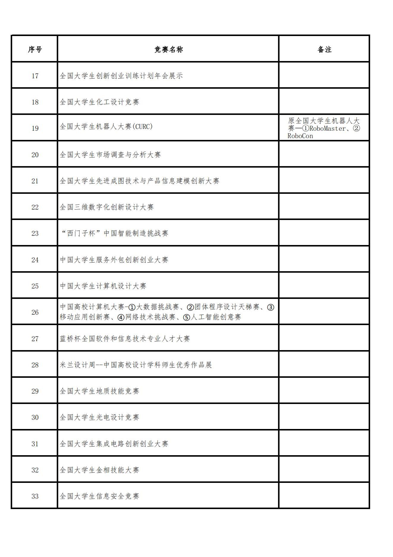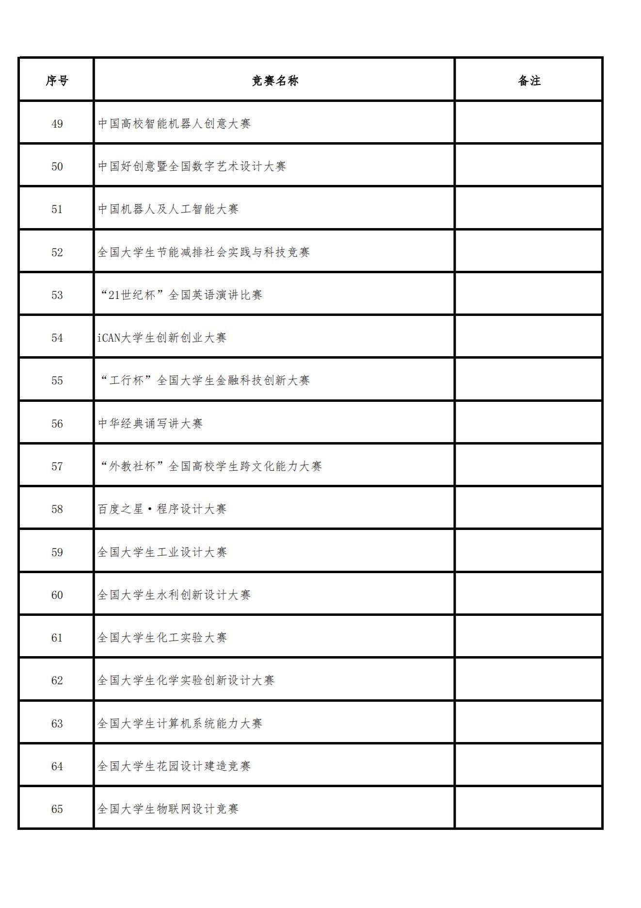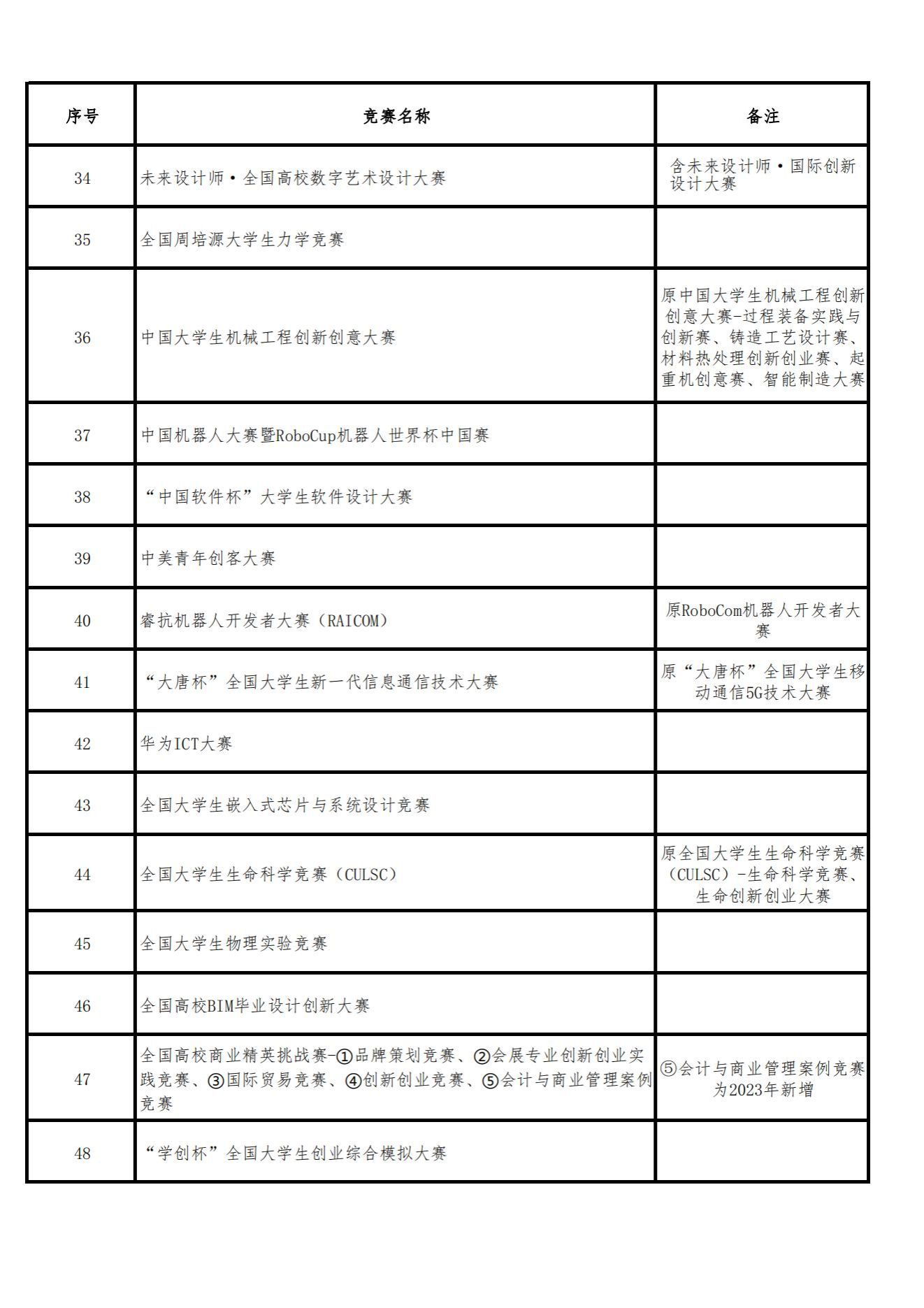 《2023全国普通高校大学生竞赛分析报告》竞赛目录