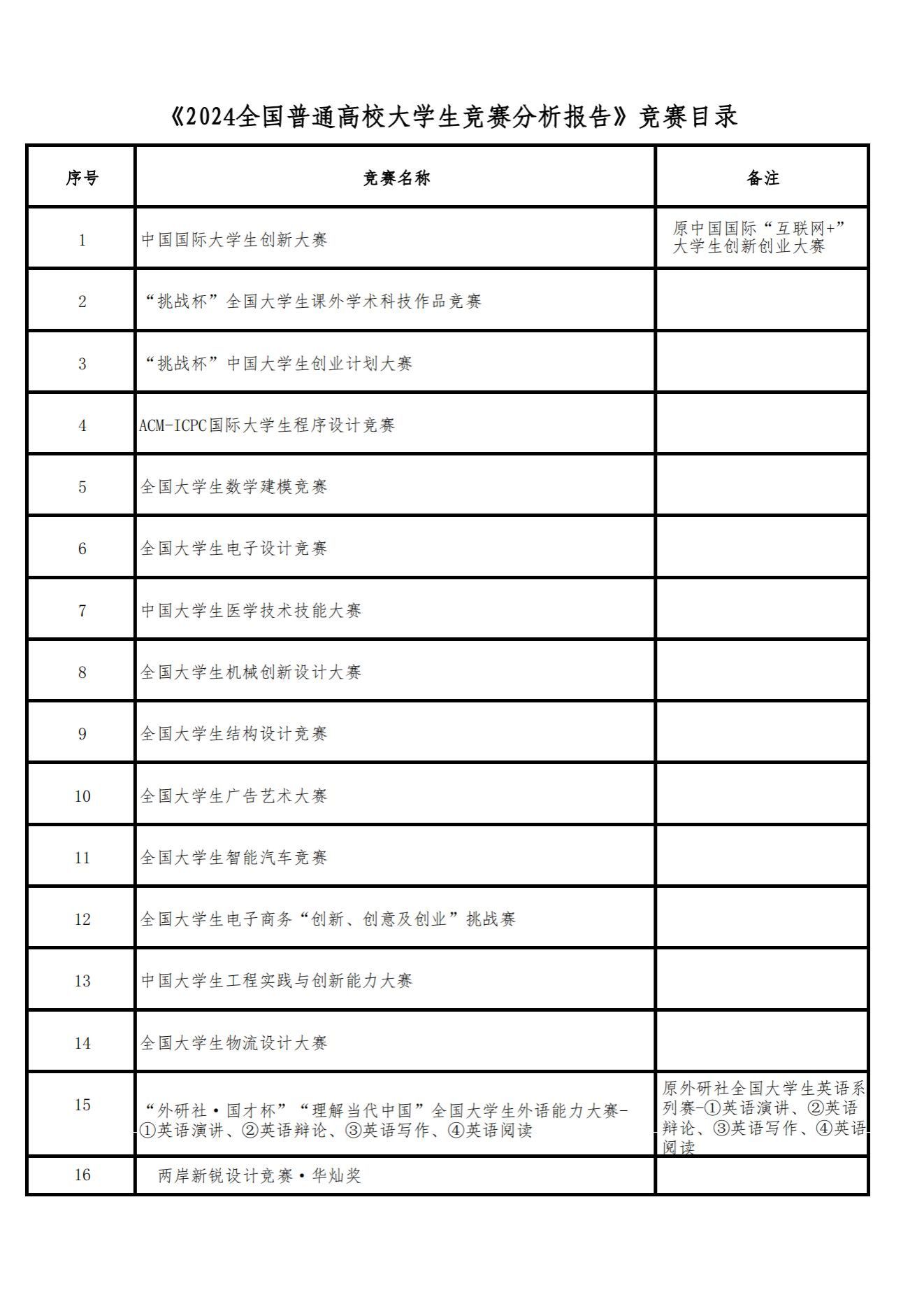 《2024全国普通高校大学生竞赛分析报告》竞赛目录
