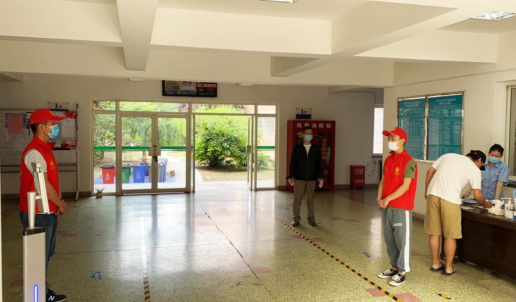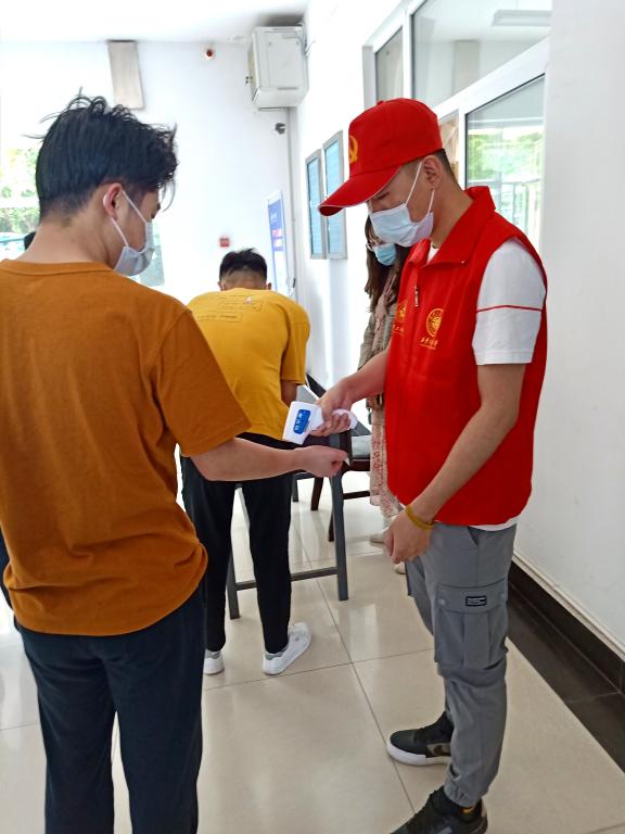 初夏时节,绿意盎然,自本科毕业生返校复学以来,工程大临潼校区恢复了生机和活力,同时还多了一道亮丽的风景——“红马甲”党员先锋岗,他们是机电学院疫情防控的一支重要力量。“疫情当前,党员先行”,机电学院党员先锋岗由30多名教工党员和108名学生党员组成,由学院党委统一指挥,分别在1号、5号和9号宿舍大厅进行晨午检督导,在错峰就餐场所维持秩序,同时帮助毕业生明晰在校防控流程、正确掌握疫情防控科学对策,为学院严格执行复学后的点对点闭环管理,筑牢疫情“防控墙”增强了防控力量。师生党员与辅导员、本科生毕设导师、研究生导师等密切联动,耐心指导学生做好返校复学和健康排查工作,在全面落实联防联控措施、构筑群防群治严密防线过程中发挥了党组织的战斗堡垒和先锋模范作用,使党旗在疫情防控一线高高飘扬。