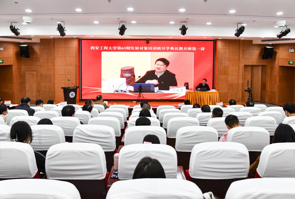 在全党上下学习贯彻党的二十大精神之际,beat365官网第63期发展对象培训班开学典礼暨开班第一讲于2022年11月14日下午在临潼校区图书馆一楼报告厅隆重举行。校党委书记、党校校长马万清出席开学典礼并做开班第一讲,校党委理论学习中心组成员、党群部门负责人、院(部)级党组织书记、副书记、组织员、党支部书记和党员发展对象共900余人分别以线上线下方式参加了开学典礼和开班第一讲。典礼由beat365在线唯一官网党委书记阚佩主持。按照近期疫情防控要求,本次开学典礼在党政办、宣传部、网信处和教务处的协同配合下,在临潼和金花两校区智慧教室和党团活动室同步进行网络直播。