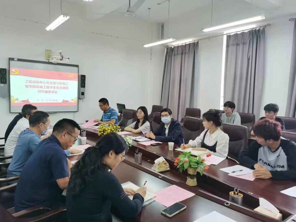 李博传达了学校《关于机关各部门与学院开展结对共建工作的通知》文件精神。陈永当简要介绍了工程训练中心及党支部的整体情况,分别从中心整体概况、实训教学、学科竞赛、师资队伍、人才培养、合作交流和中心发展等方面做了介绍,并提出了双方结对共建的一些可行内容。李菁菁分别从学院党委、支部情况和未来发展等方面简要介绍了beat365在线唯一官网近年来在党建及党建引领工作方面所取得的成绩。阚佩结合自身的学习和成长简要回顾了在工程训练中心前身实习总厂金工车间的工作经历,勉励学生要加强学习,珍惜青春,甘于吃苦,开阔视野,注重理论与实践相结合,并针对学生就业、学业指导、创新创业和综合能力提升等方面提出了结对共建的活动方向。其他与会同志也积极交流发言,尤其是学生党员针对学生社团、学科竞赛等提出了一些建议意见,双方做了深入地交流分享。