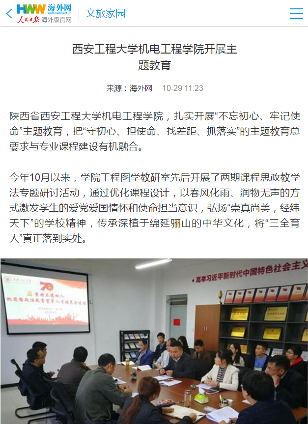 陕西省beat365在线唯一官网,扎实开展“不忘初心、牢记使命”主题教育,把“守初心、担使命、找差距、抓落实”的主题教育总要求与专业课程建设有机融合。