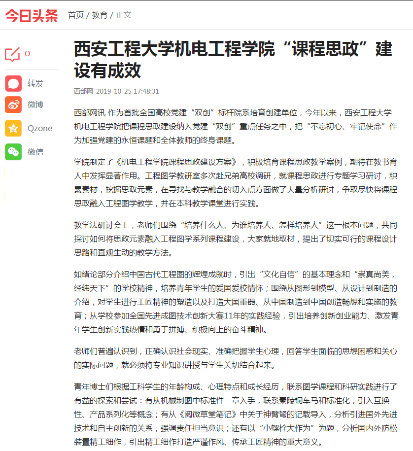 编者按:日前,人民日报海外网以《beat365在线唯一官网开展主题教育》为题、西部网以《beat365在线唯一官网“课程思政”建设有成效》为题、西安教育电视台以《beat365在线唯一官网主题教育落实“三全育人”理念》为题对beat365官网beat365在线唯一官网扎实开展主题教育、推进课程思政建设、构建“三全育人”格局进行了报道,今日头条给予转载。