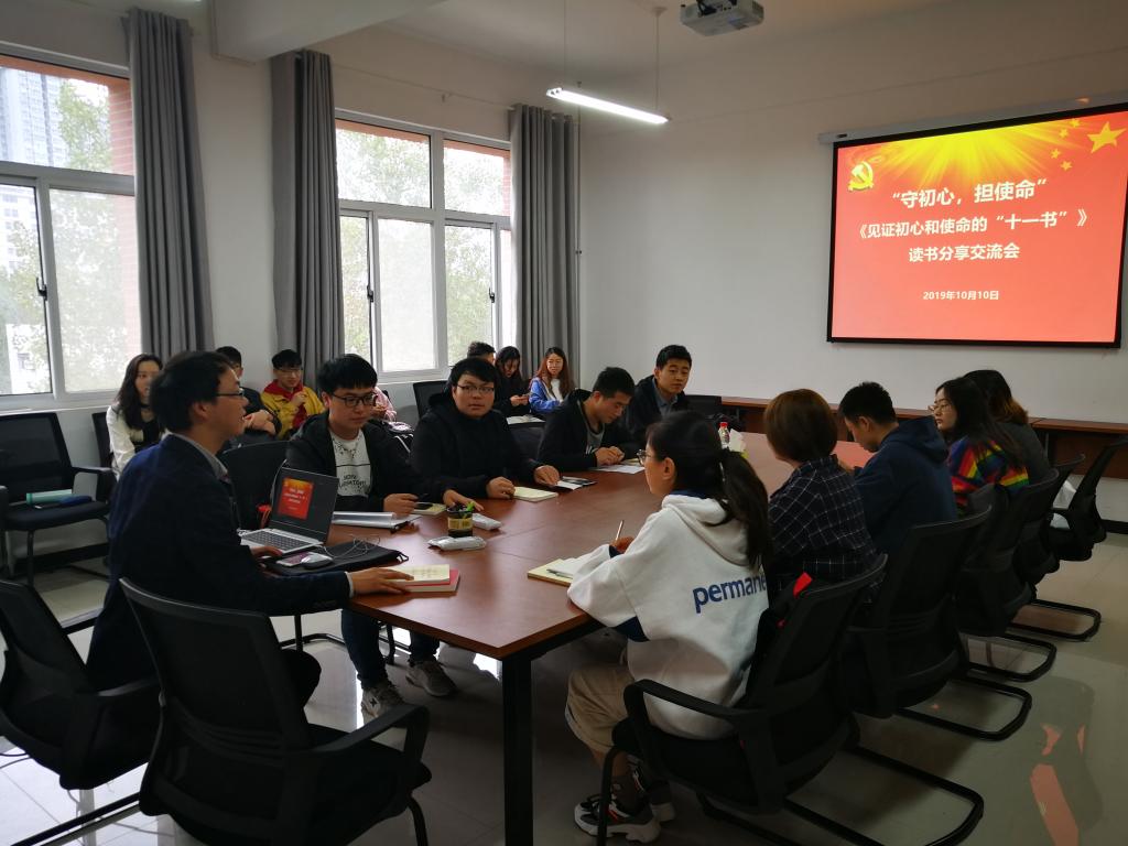 为深入开展“不忘初心、牢记使命”主题教育,弘扬爱国主义精神和革命精神,传承革命先烈“苟利社稷,不顾其身”的使命担当,坚定理想信念和道德追求,10月10日,beat365在线唯一官网学生第三和第四党支部举办“守初心,担使命”——《见证初心和使命的“十一书”》读书分享交流会。会议由学生第三党支部书记秦方刚主持。