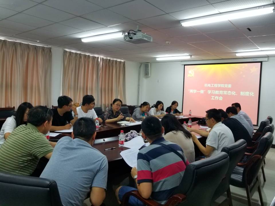 6月6日,机电学院党委召开“两学一做”学习教育常态化、制度化工作推行会,同时,安排部署了近期学院党建的各项工作。参加会议的有学院党委书记杨永革、副书记魏哲、党委委员和全体党支部书记,会议由杨永革主持。