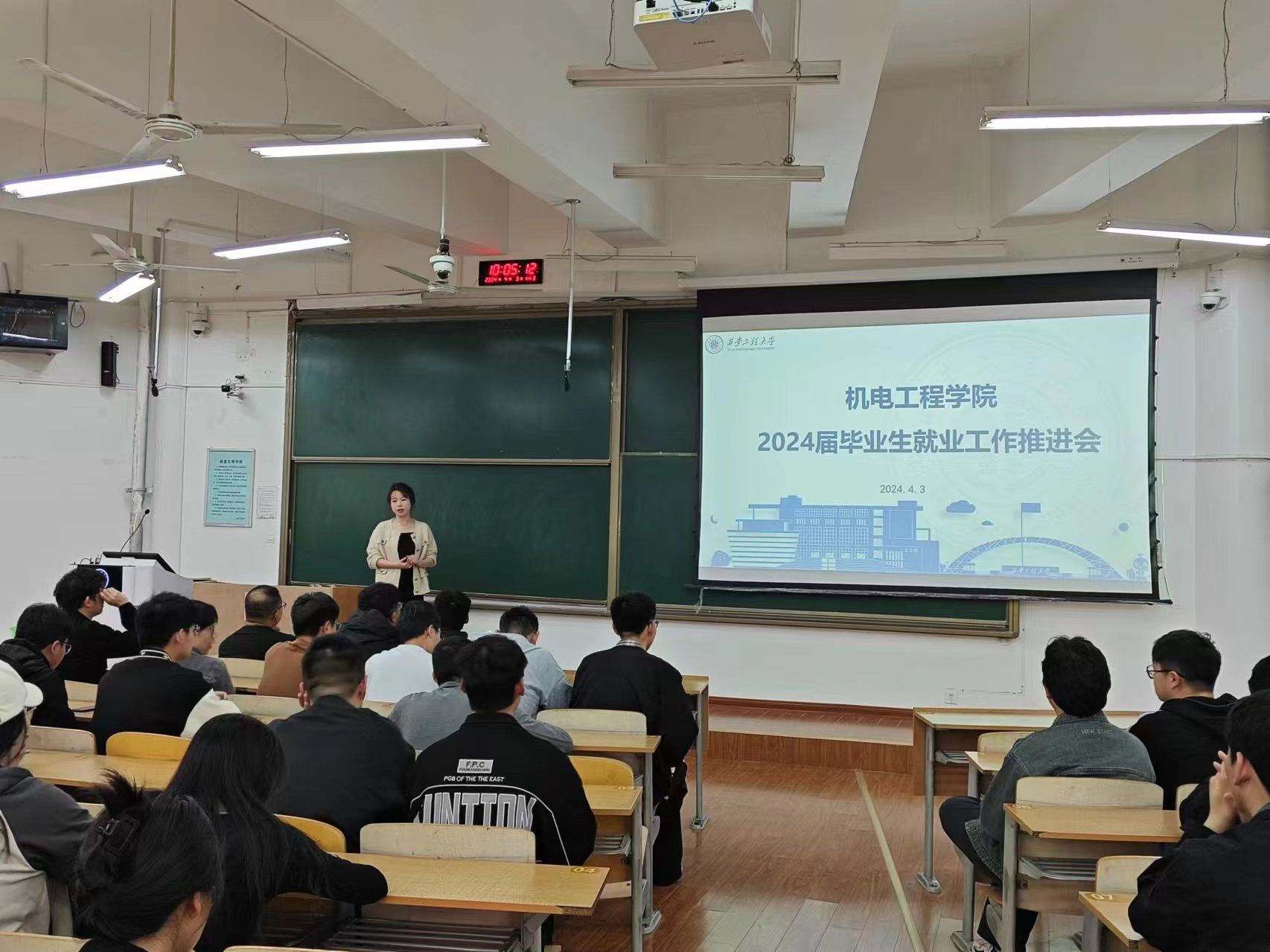 会议伊始,李菁菁首先通报了2024届本科生的就业情况,引导同学们要积极摆正心态、及时转变就业观念、找准自我定位、做好职业规划;广泛关注招聘信息、注意信息的时效性、“不要等,不要耗”;拓宽就业渠道,切忌好高骛远、珍惜每次就业机会,在现阶段把握好四月春季招聘的黄金期、充分准备并主动投递简历。