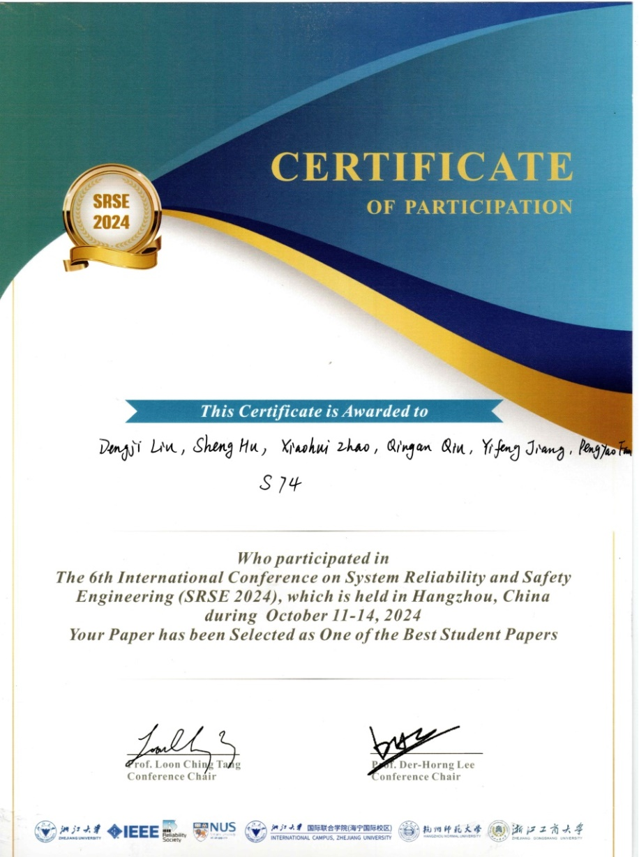 此次获奖充分肯定了课题组在质量与可靠性领域的研究成果。未来,课题组将继续致力于前沿科学问题的探索和技术创新,为推动质量可靠性领域的发展做出贡献。(撰稿:胡胜 审稿:阚佩)