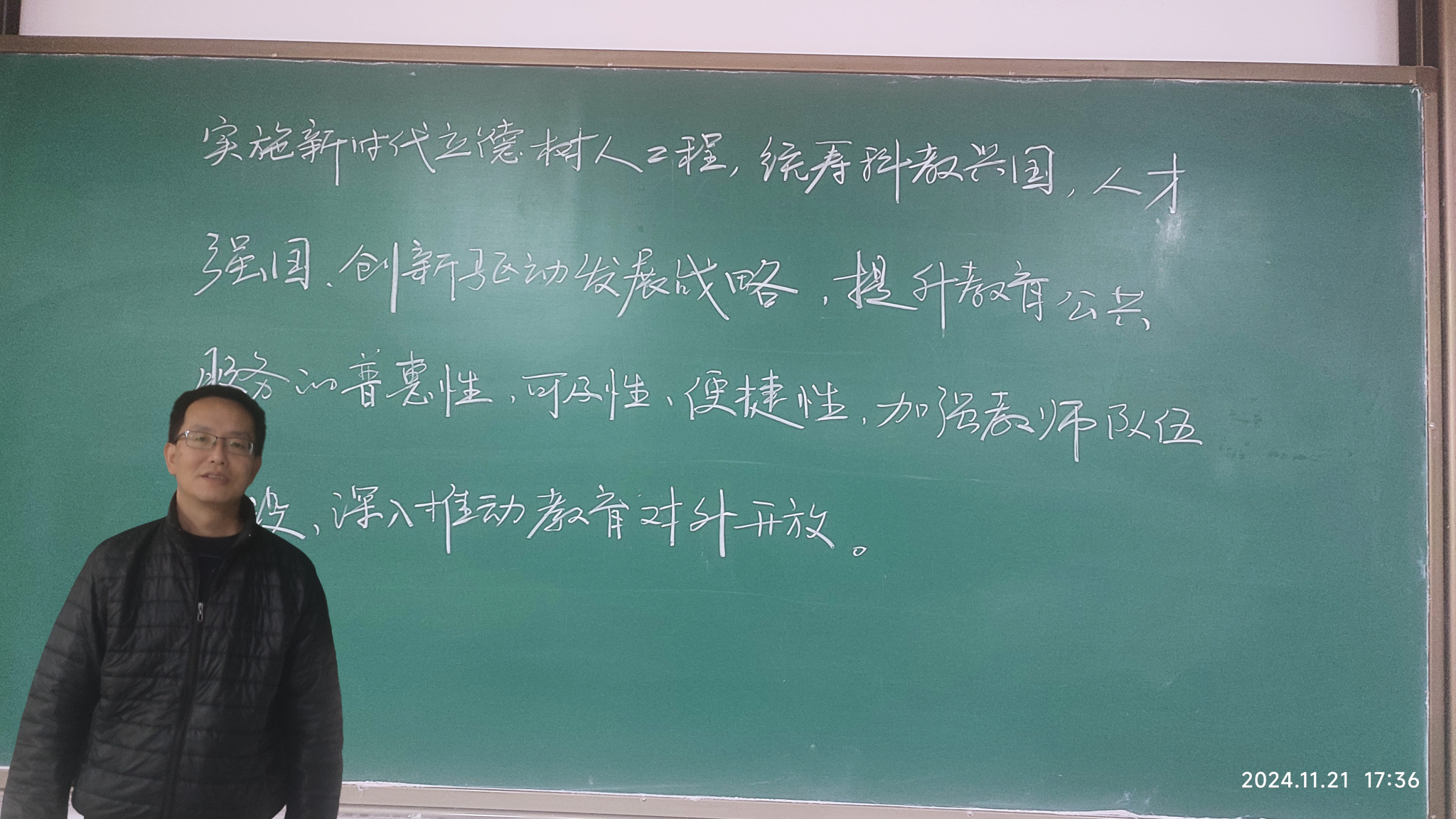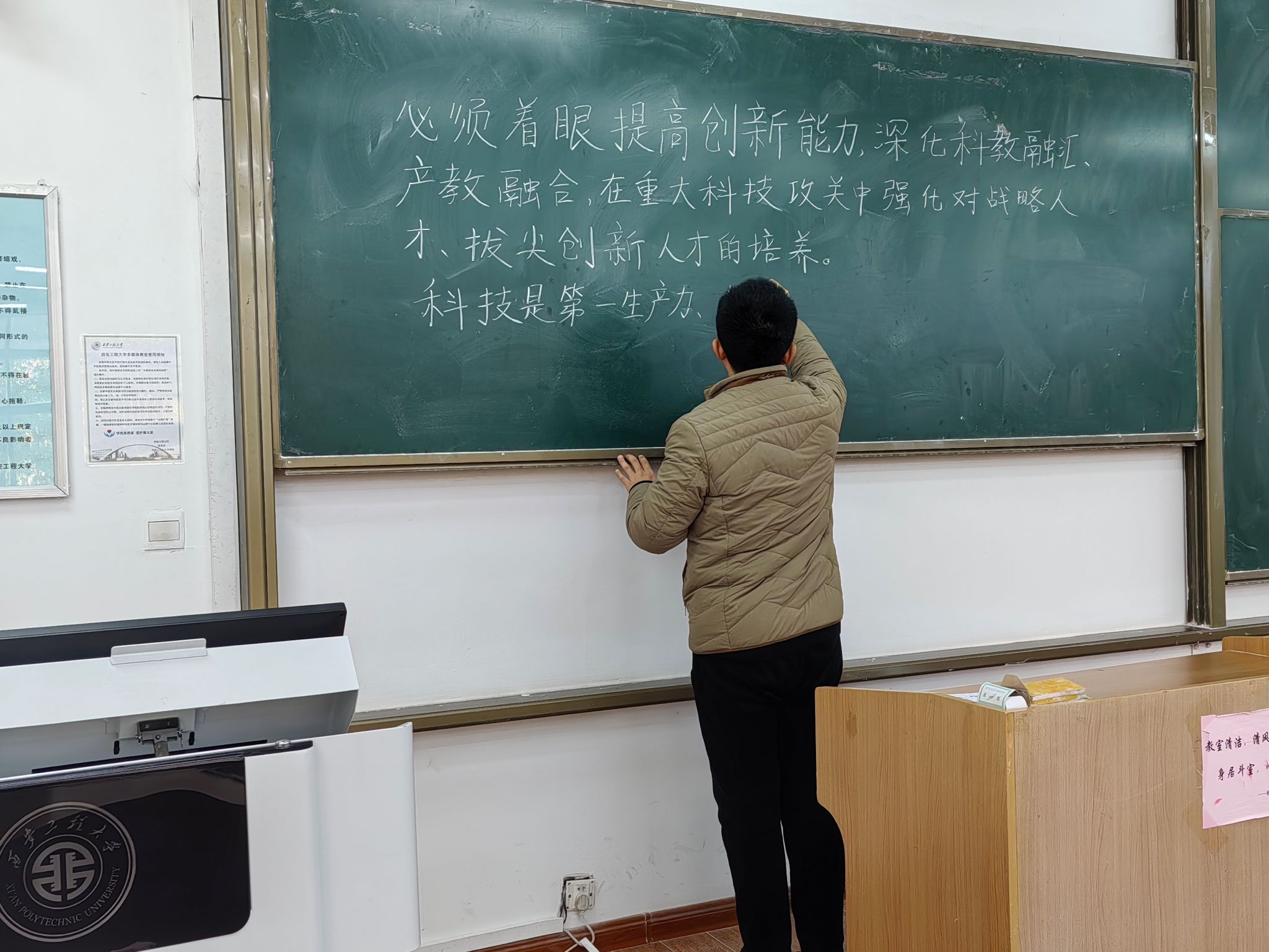 beat365在线唯一官网已经连续举办六届教职工粉笔板书比赛。本次活动受到学院教职工的热烈响应,纷纷利用课余时间深入学习习近平总书记系列讲话、党的二十大精神和党的二十届三中全会精神等内容,在教室或教研室勤练粉笔板书,对理论水平和教学能力的提升起到了积极的促进作用。(撰稿:李良 审核:阚佩)