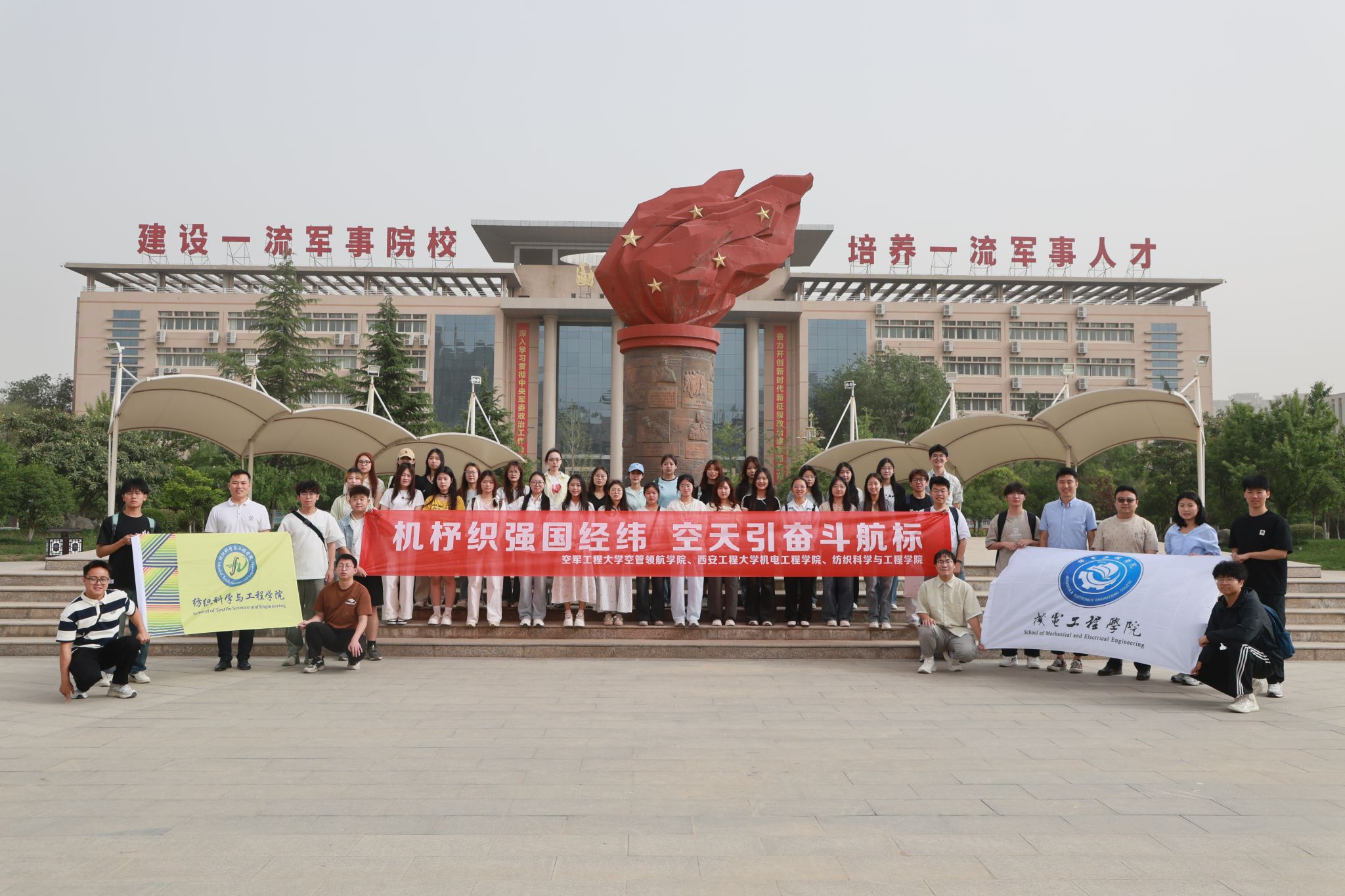 在五四青年节的热烈余韵中,5月17日,beat365官网beat365在线唯一官网团委与纺织科学与工程学院团委联合组织校青马班学员代表及部分团员青年共40余人,赴空军工程大学空管领航学院开展“机杼织强国经纬・空天引奋斗航标”主题团日活动。机电学院党委副书记冯翊、团委书记刘鹏、辅导员郭方义,纺织学院团委书记曹鑫参加此次活动,这场跨越军地界限的青春对话,在初夏的晴空下激荡出强国强军的时代强音。