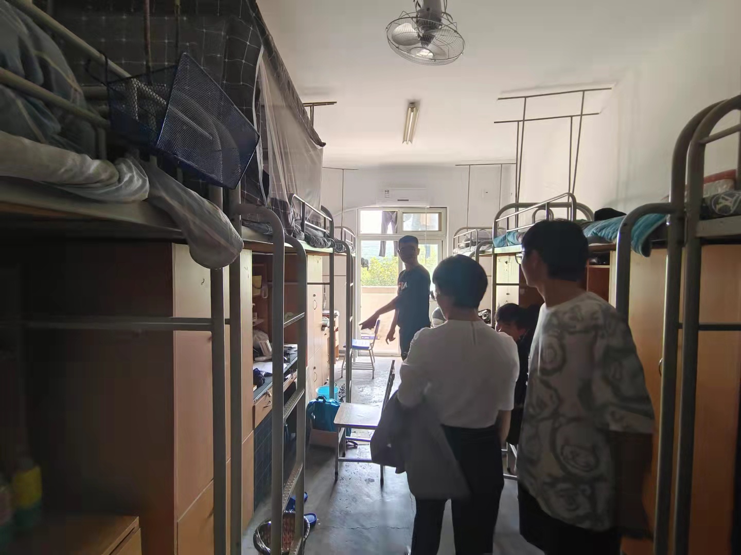 本次检查围绕宿舍安全、室内环境、学习氛围三个方面展开。针对近期气温偏低特点,检查人员重点针对是否有学生使用违章电器、宿舍有无明火点和有无其它安全隐患做了详细的排查。检查人员对发现的问题及时提出整改意见;对出现屋顶漏雨的宿舍,从安全角度和施工便利角度考虑提出了建议,协助学生尽快解决。