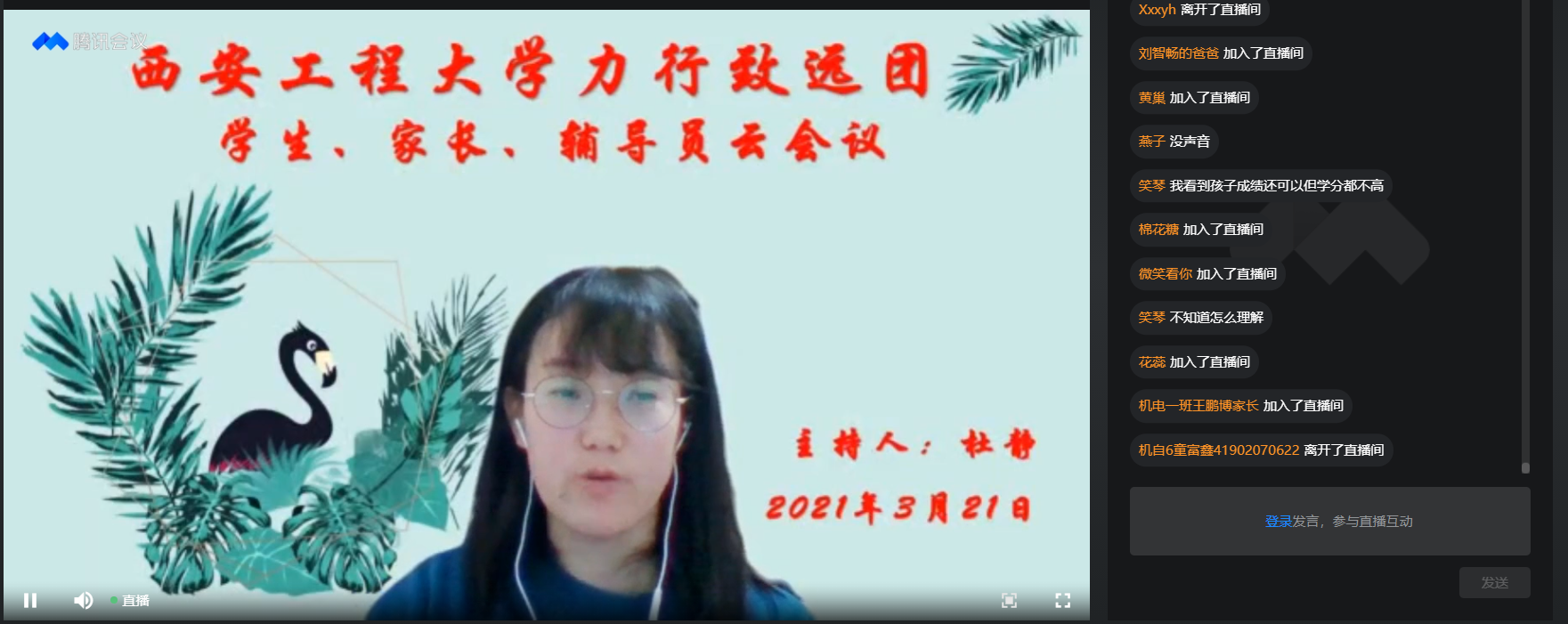 2021年3月21日,beat365在线唯一官网“力行致远”导师团通过腾讯会议直播方式举行了家校云会议。学生和家长共500余人参加会议。会议由“力行致远”导师团秘书杜静主持。