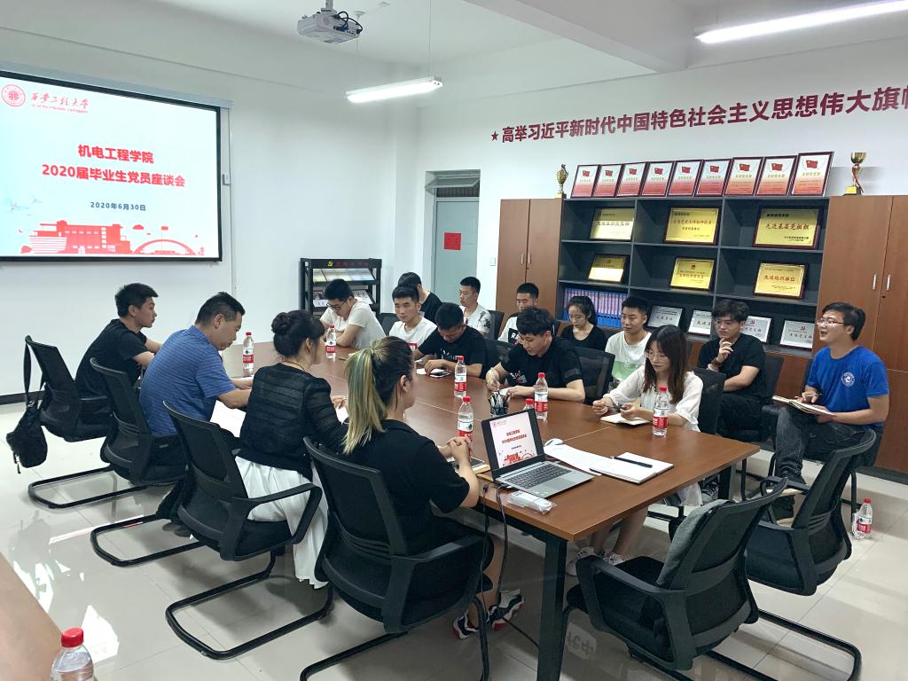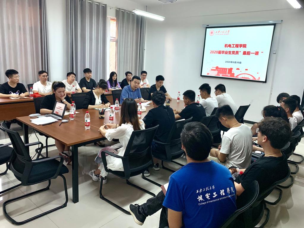 2020年6月30日,在建党99周年来临之际,beat365在线唯一官网党委举办2020届本科毕业生党员座谈会,校党委副书记赵小峰以“回顾党的光辉历史,争做新时代合格共产党员”为题为学生党员代表讲授“最后一课”。学院党委书记王鸣媛、学生第三党支部书记秦方刚以及20余名毕业生党员聆听了党课。
