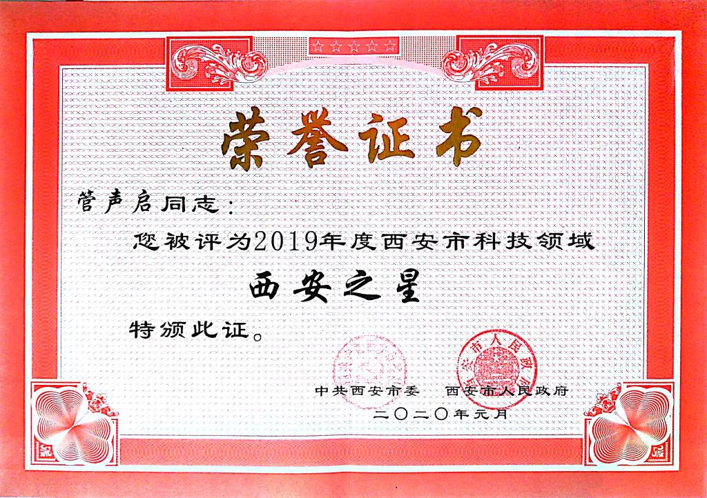 日前,西安市委、市政府研究决定,授予73名同志2019年度西安市科技、文化、卫生等领域“西安之星”荣誉称号,入选者纳入西安市人才库,beat365官网beat365在线唯一官网管声启教授获得科技领域“西安之星”。