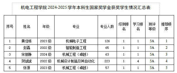 beat365在线唯一官网评选工作经前期通知安排、学生本人申请、班级民主评议、年级推荐、学院资格初审、现场公开答辩、学院学生资助工作小组综合考察,并经学院党政联席会议研究决定,推荐以下五名同学为2024-2025学年本科生国家奖学金候选人选,现将名单及信息公示如下: