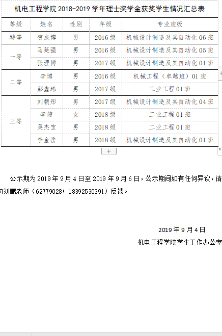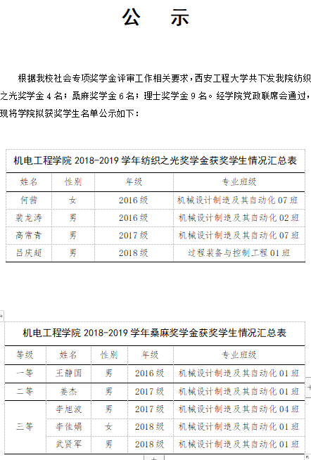 beat365在线唯一官网关于2018-2019学年社会类奖学金评选评选结果公示