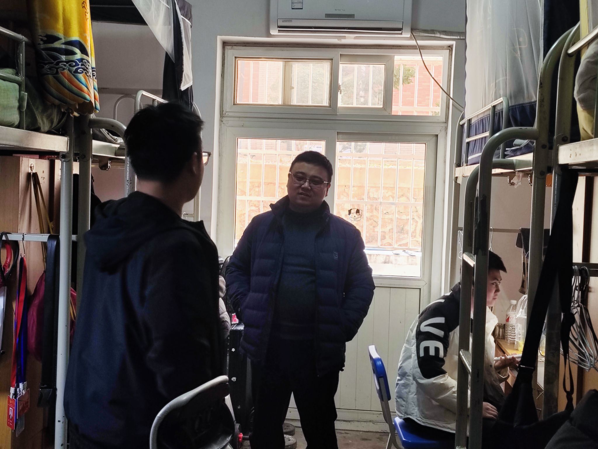 走访过程中,辅导员与学生“面对面”谈心,重点关注寒假期间家庭变故、学业困难、就业压力较大的学生群体。“年过得好不好?”“毕业设计进展如何?”“工作落实情况如何?”一句句暖心询问拉近了师生距离。2022级智能制造工程学生张义龙表示:“辅导员不仅检查了宿舍安全,还主动询问了我们的学业规划和发展目标,让我对新学期的任务更加清晰了。”