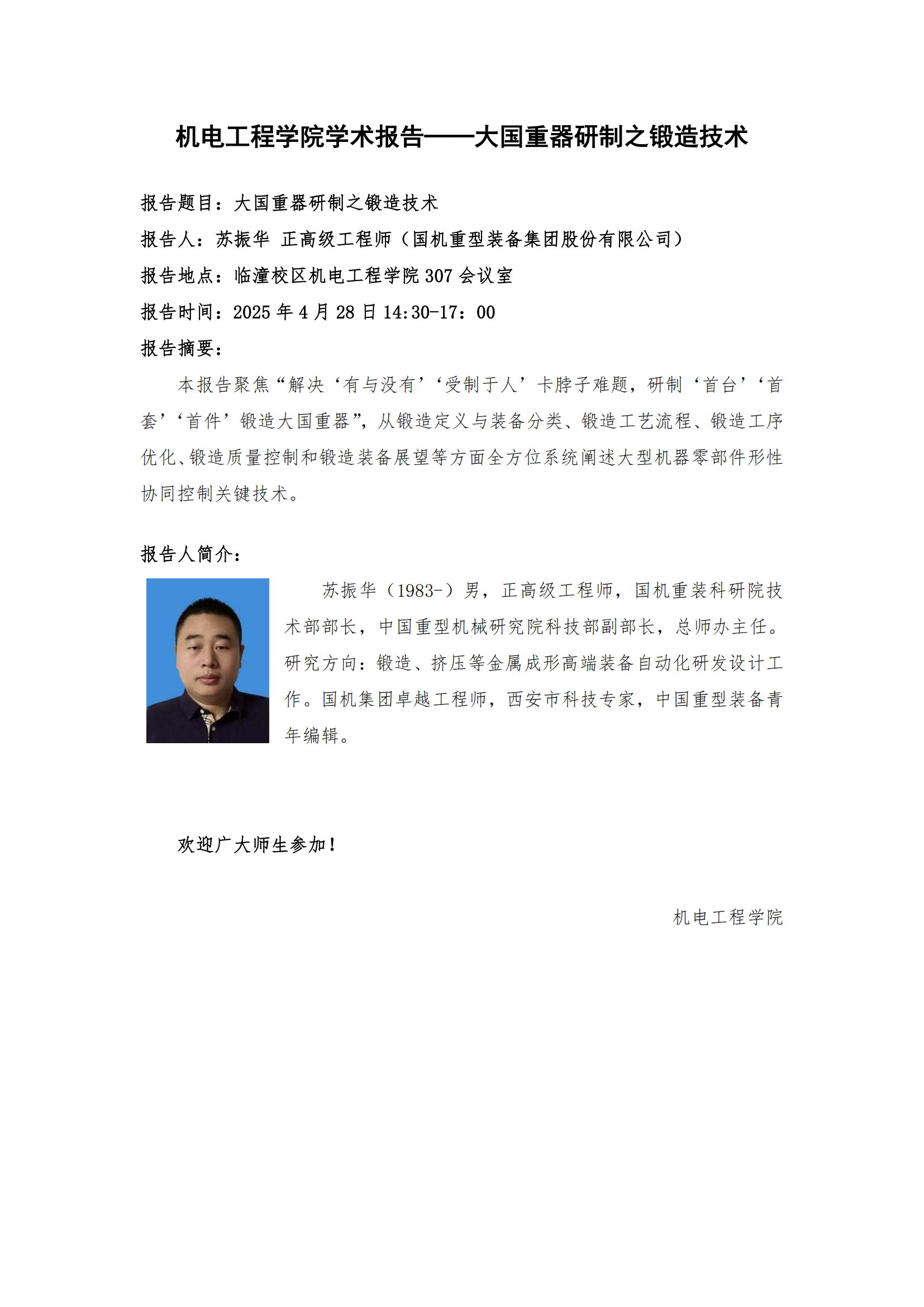 beat365在线唯一官网学术报告──大国重器研制之锻造技术