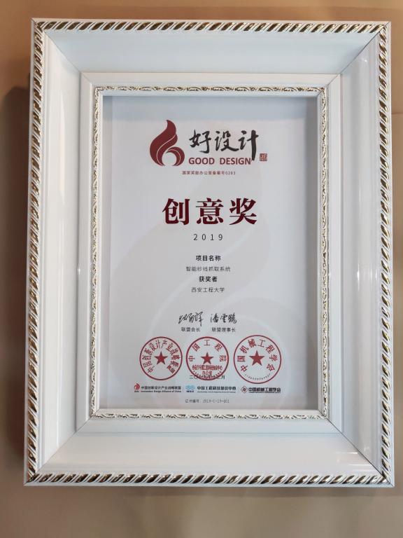 12月9日,以“创新驱动发展 设计赋能未来”为主题的2019年中国创新设计大会暨好设计颁奖典礼在福建厦门举行。beat365官网beat365在线唯一官网管声启教授、刘文慧副教授指导,研究生张凡、肖旭等五位同学设计的作品《智能纱线抓取系统》荣获2019好设计国家创意奖。